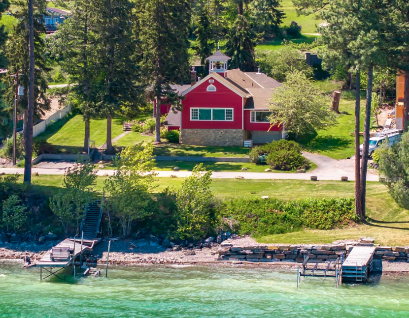 A historic icon of the Flathead Valley, the original Lakeside Red Schoolhouse sits proudly upon 108 feet of Flathead Lake shoreline. This beautifully restored lakefront home is reminiscent of an earlier era, with careful renovations conserving its classic charm. Originally built in 1906, the home was expanded in 1940 and throughout the 1960s, then fully remodeled in the 2000s with meticulous attention to every fine detail. This spacious residence encompasses 2,547 square feet with 10 ft ceilings and is complemented by an additional 570-square-foot enclosed summer porch with soaring vaulted ceilings and original windows. Its restored maple hardwood floors shine, as the open kitchen-to-living room layout flows into sweeping views of Flathead Lake and the Swan Mountain Range. Period elements include transom and French pane windows, while cozy gas fireplaces in the living and sitting rooms enhance its nostalgic ambiance. This unique property blends timeless history with lakefront luxury, a rare opportunity to own a piece of the past on the shores of Flathead Lake. |
