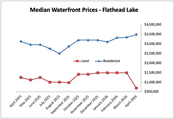 Flathead Lake Real Estate The first week of April has provided beautiful early spring weather to the Flathead Lake area. The warm sunshine has begun to yield runoff from the snow packed mountains and the lake is beginning to fill quickly. There were two sales reported in March and a handful of waterfront homes are under contract and expected to close by the end of the month. Overall the market is matching last year's activity at this time. The lower priced sales so far this year have been primarily down the West Shore and mid-East Shores. Slightly more isolated locations and larger (more than 100 feet) frontage parcels translated to a lower average price per front foot shown below. |