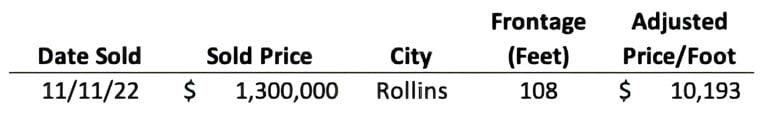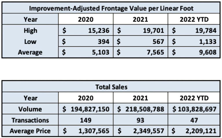 Sustained buyer demand from the past 24 months continues to hold down inventory and prop up prices in the waterfront market. There was only one closed sale reported during the month of November.